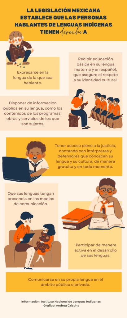 Por otro lado, el Instituto Nacional de Lenguas Indígenas (INALI) explica que la legislación mexicana establece que las personas hablantes de estas tienen derecho a: