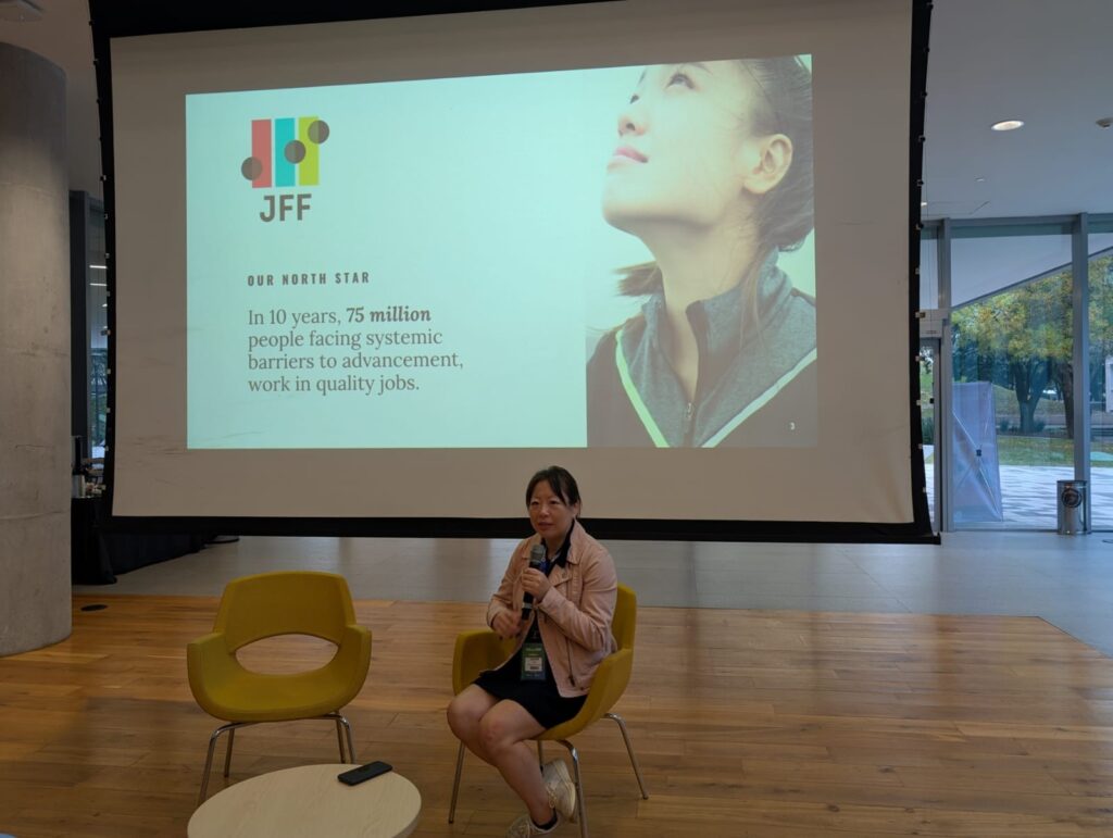 La conferencia “Lessons from the US to transform learning and work in Latin America” impartida por Sharon Leu, ejecutiva residente para JFFLabs, indicó el estado actual y los aspectos en común que Estados Unidos comparte con América Latina con respecto a los retos en escolaridad y empleabilidad de la actualidad. Durante la charla, Leu mencionó tres de estos desafíos: